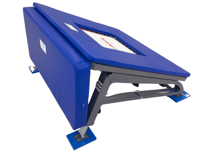 gymnasten ved "for tæt" landing, vil ramme den bløde bumper, som afbøder faldet og samtidig skubber gymnasten i retning af nedspringsmåtten. En stor sikkerhed for gymnast og god hjælp for modtager.