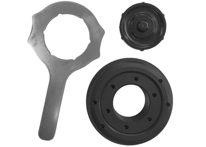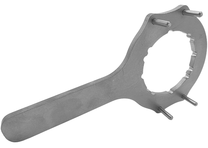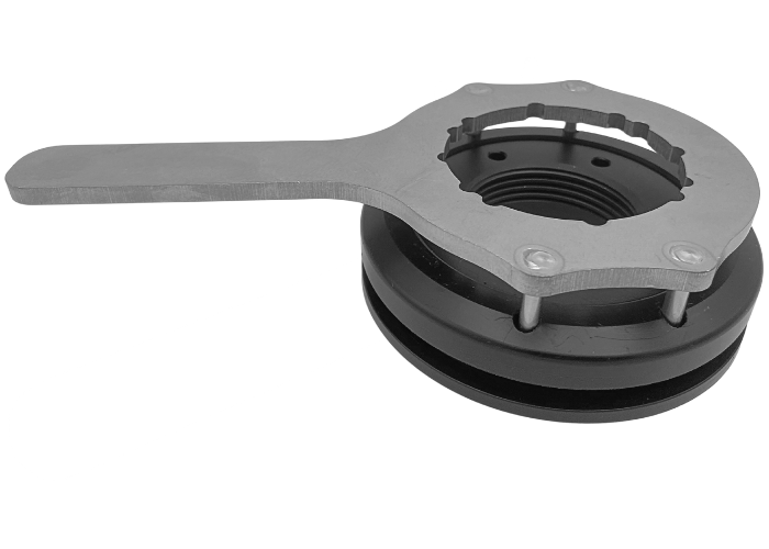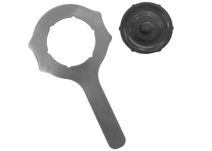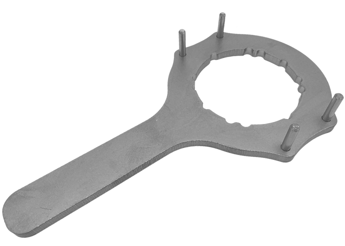 Spændenøgle til at spænde/løsne sort skruelåg til Airtrack Pro og til at montere reparationsventil.