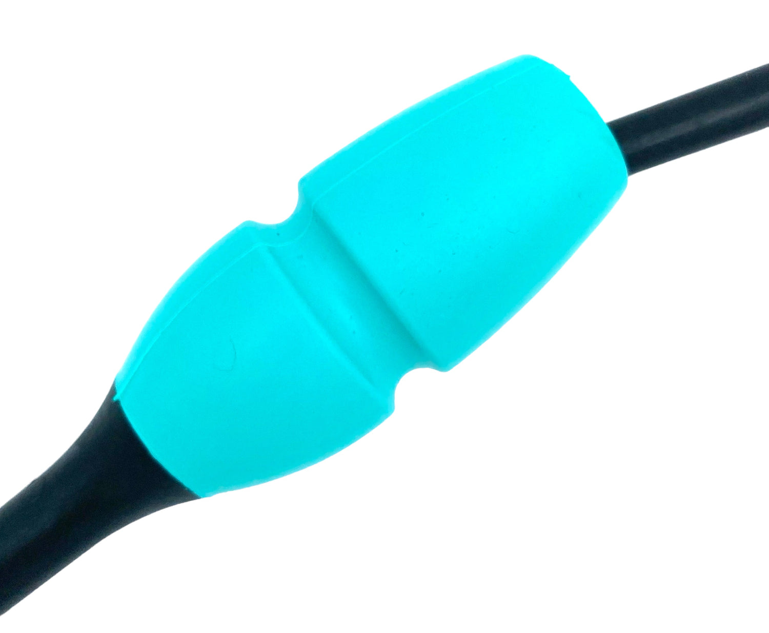 Tofarvet gymnastikkølle fra Pastorelli med en krop (den turkis del) af gummi, hvilket gør, at køllen kan stødes mod gulvet og springe tilbage.