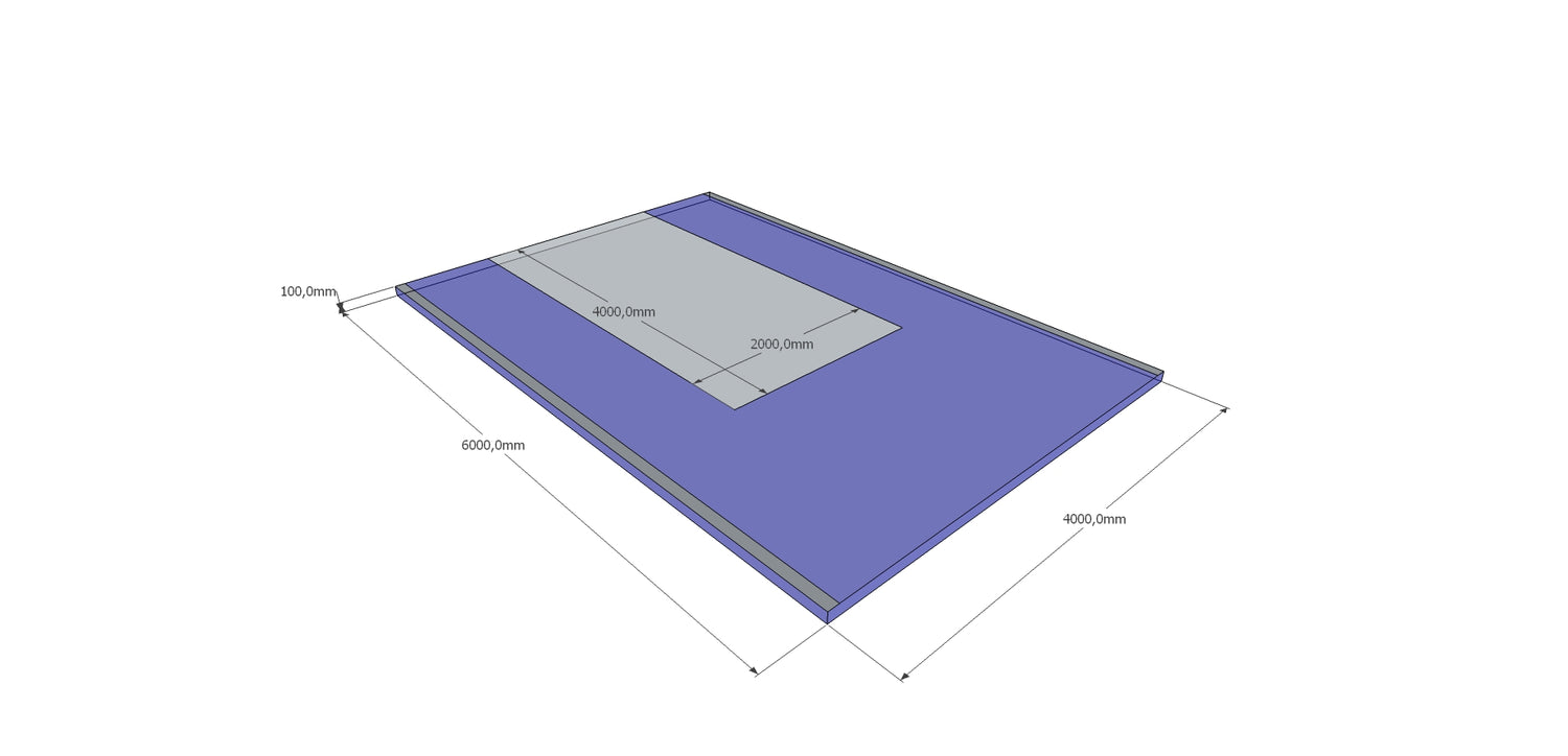 Overlægsmåtte er markeret med landingsfelt på 200x400 cm.