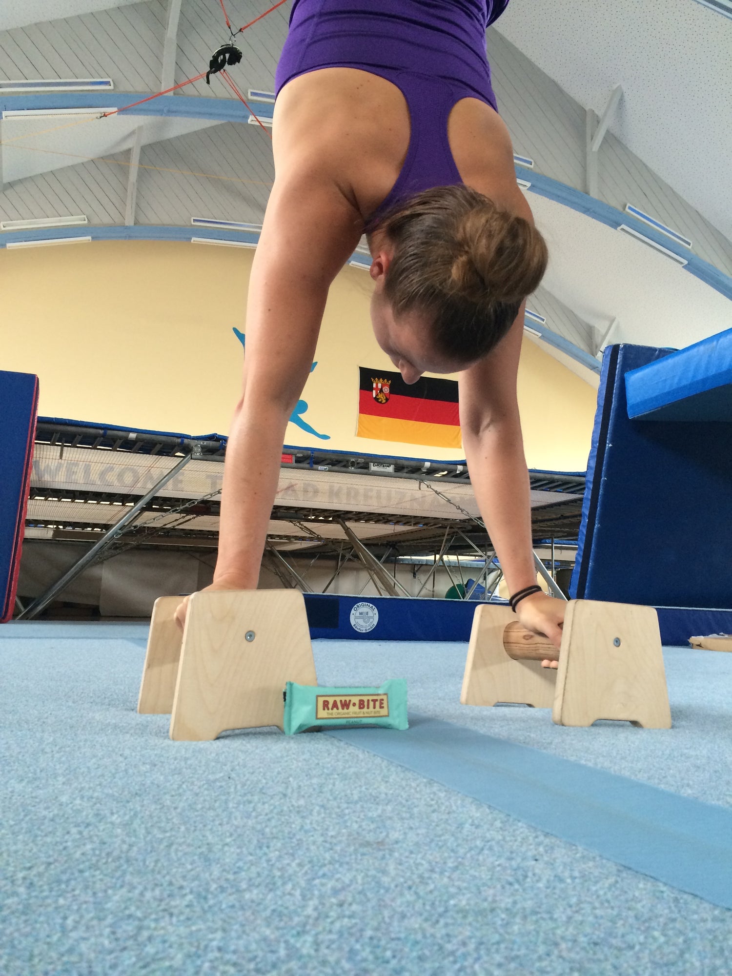 Håndstandstræner med ovale ribbestokke.