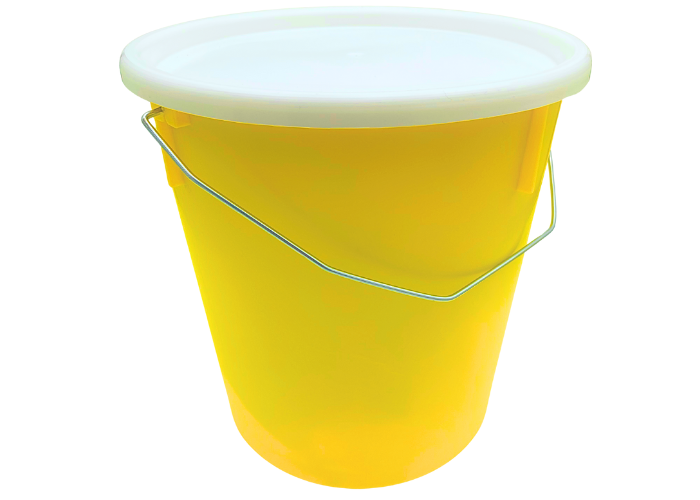 Plastikspand med låg – nem opbevaring og transport, holder styr på udstyret.