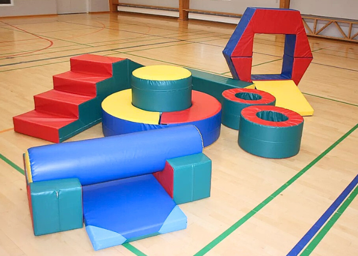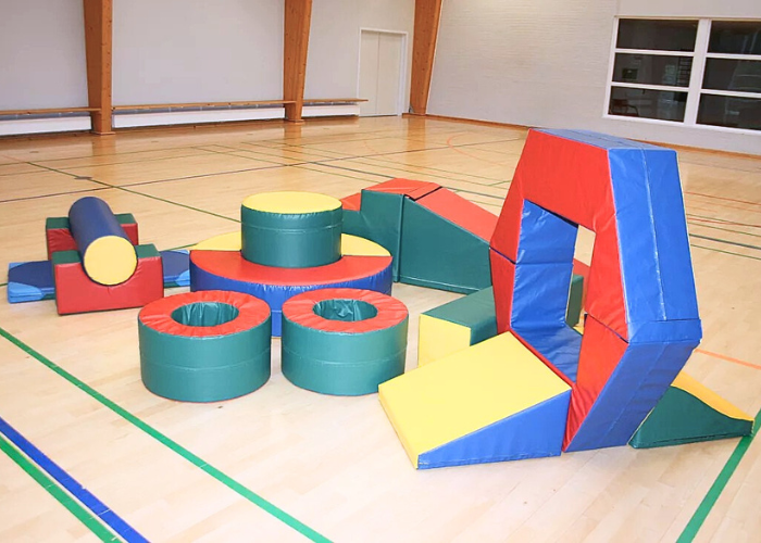 I sætter forhindrings banen op eller når der skal øves balance og motorik.