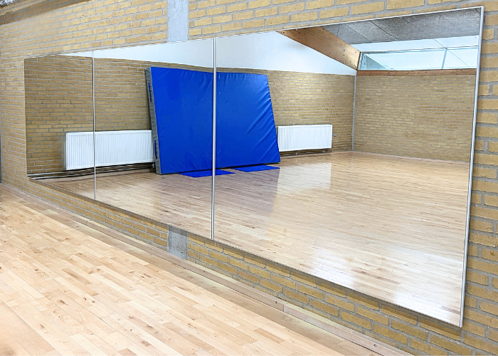Foto: Pelany plademonteret spejlvæg monteret på Hals Skole.