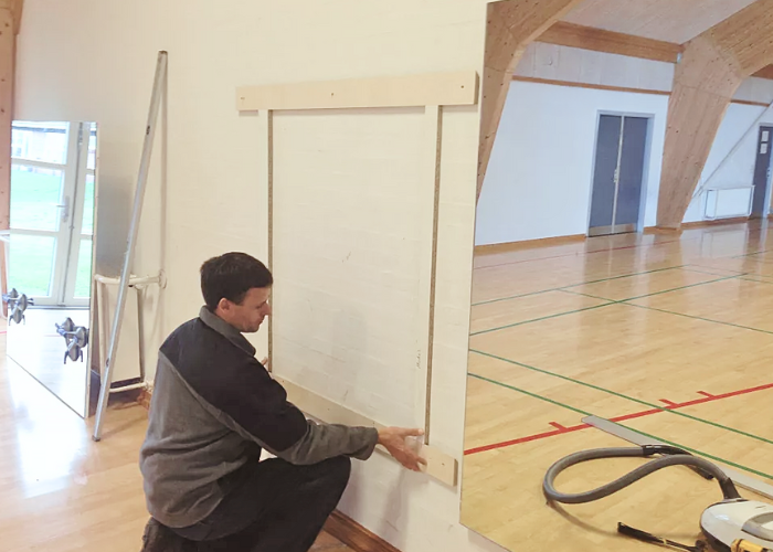 Foto: Pelany plademonteret spejlvæg monteret på Hals Skole.