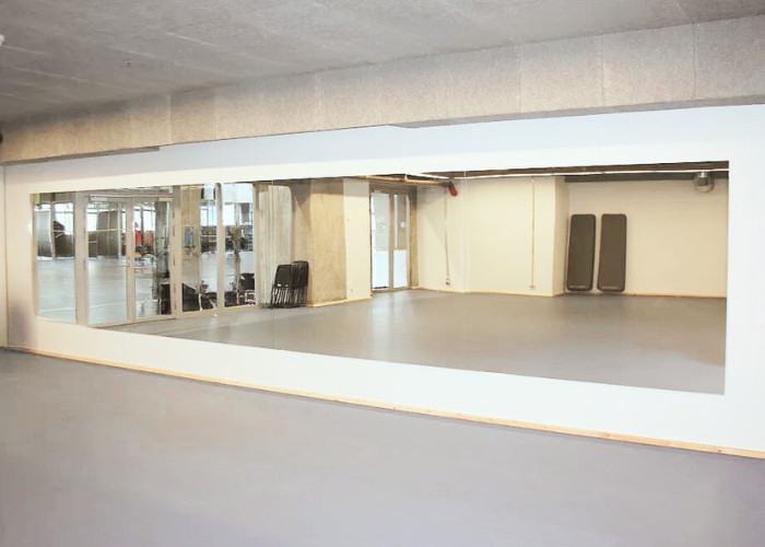 Foto: Pelany spejlvæg fra gymnashop.dk monteret i DGI HUSET i NORDKRAFT.