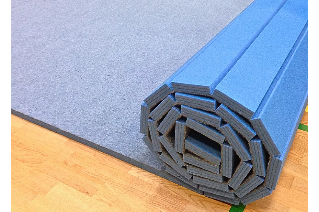 Tilløbsmåtten er nem at rulle ud og lægger sig hurtigt fladt med gulvet. Ligeledes nem at rulle sammen efter brug og tager ikke meget lagerplads.
