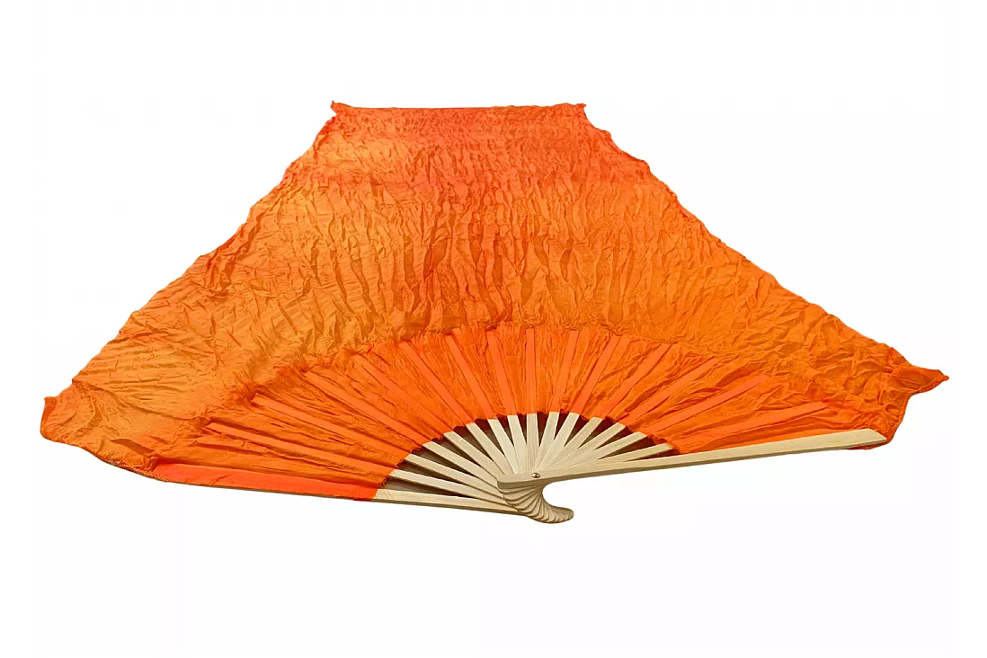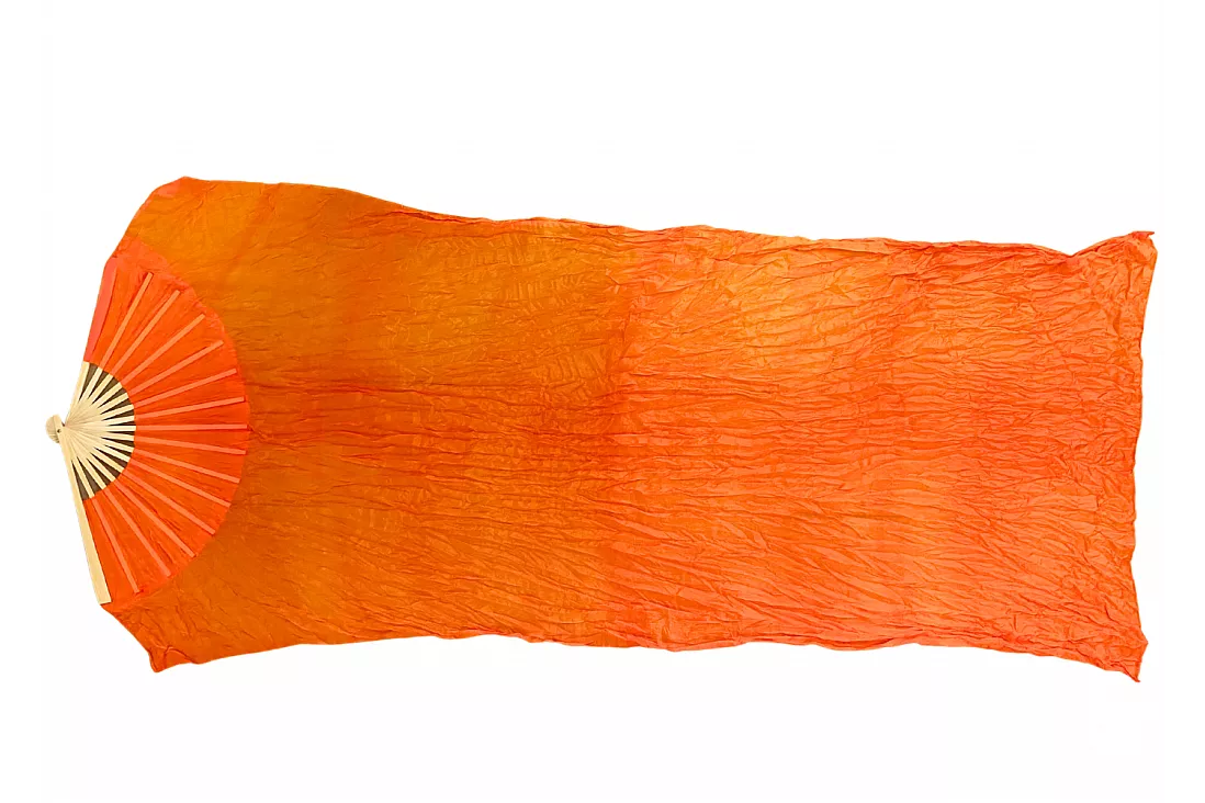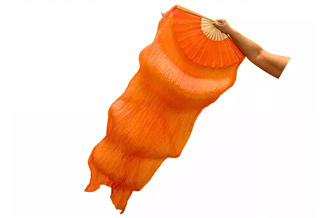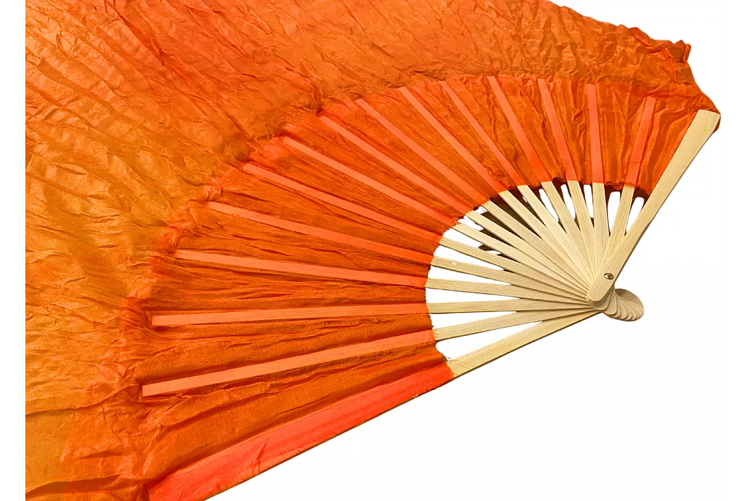 Viftevimplen er fremstillet af 170 x 80 cm let og smidigt silkestof, monteret på en 55 cm bred vifte lavet af bambustræ.