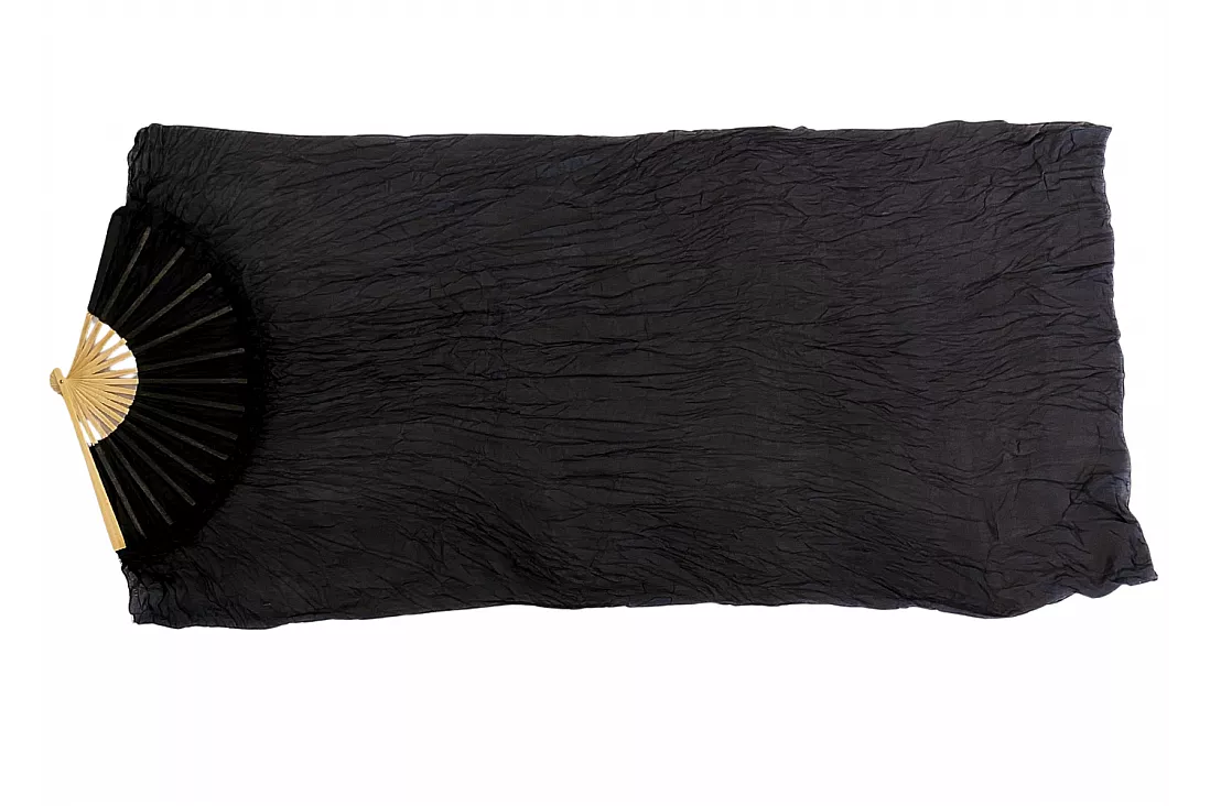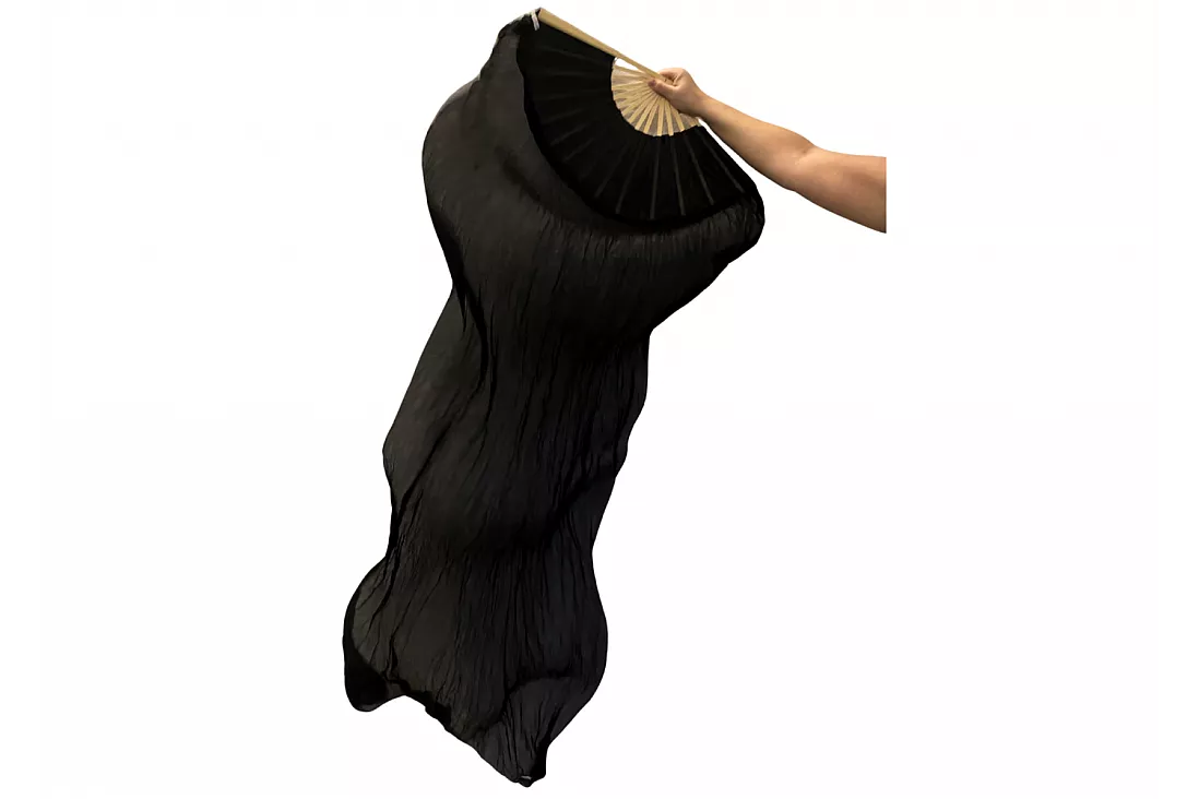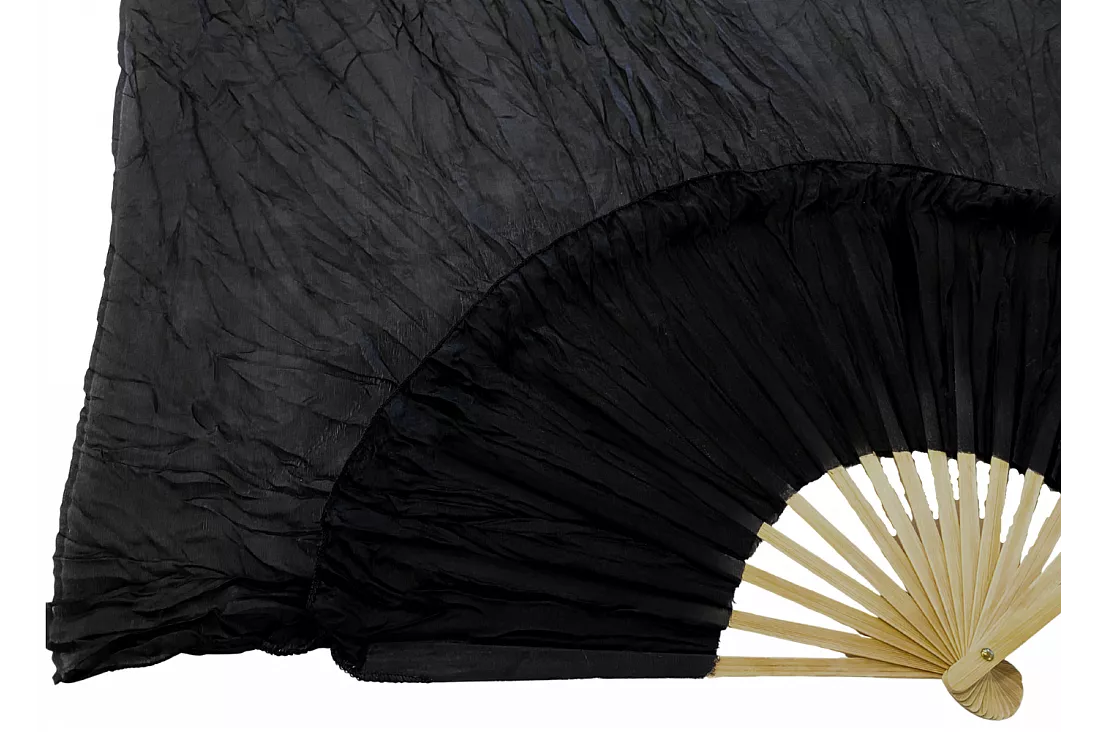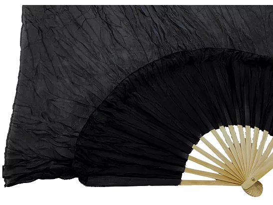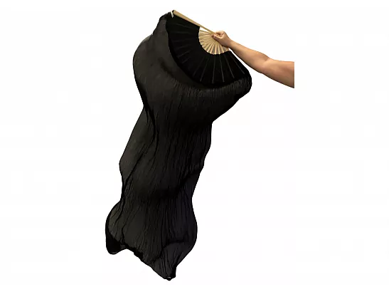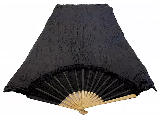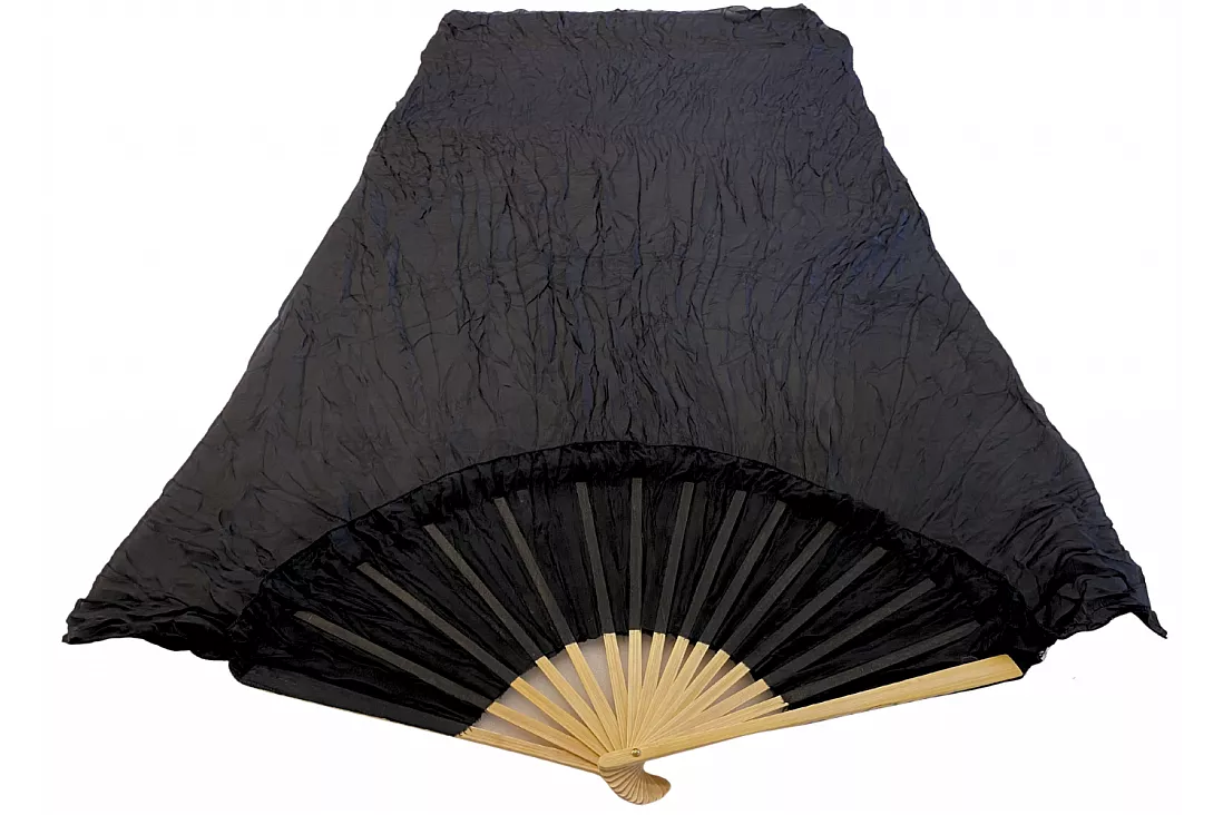 Viftevimplen er fremstillet af 170 x 80 cm let og smidigt silkestof, monteret på en 55 cm bred vifte lavet af bambustræ.