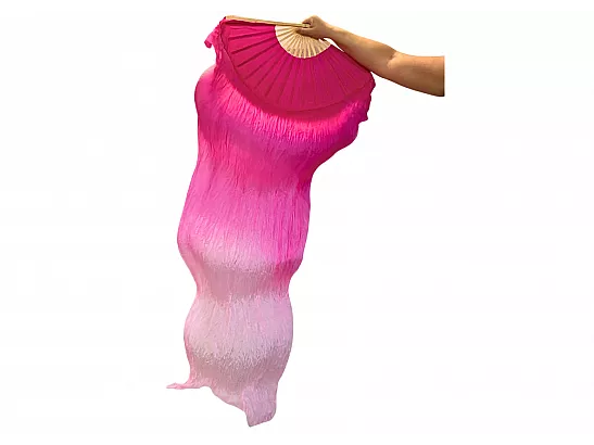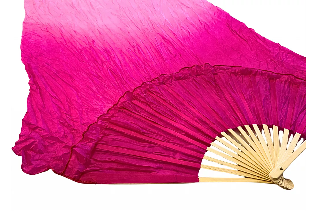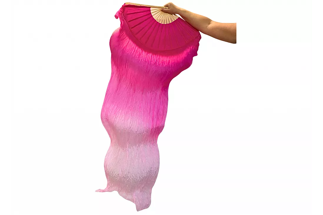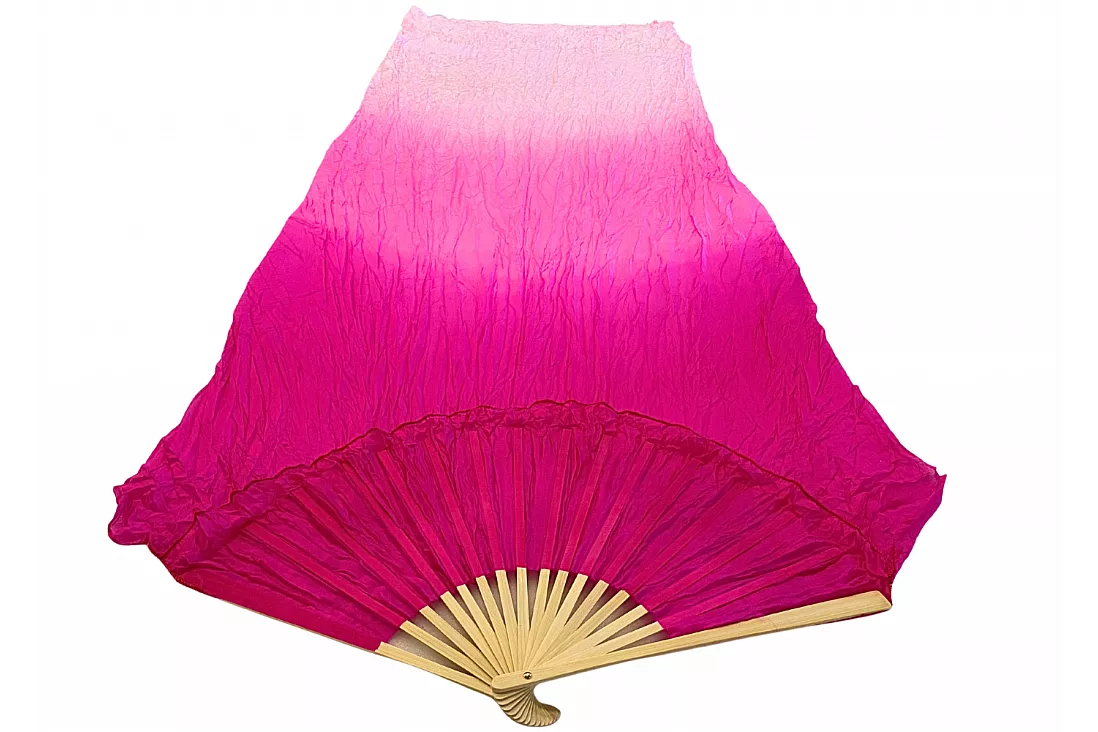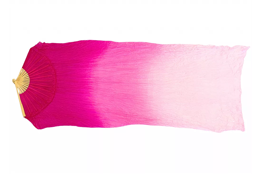 Viftevimplen er fremstillet af 170 x 80 cm let og smidigt silkestof, monteret på en 55 cm bred vifte lavet af bambustræ.