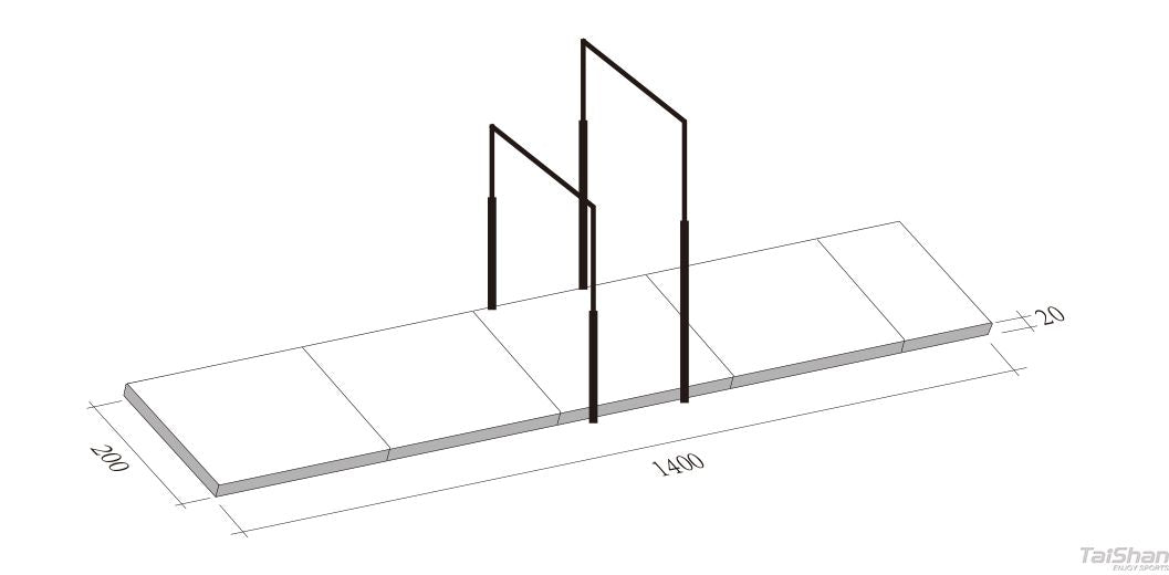 Komplet landingsmåttesæt til forskudte barre består af 4 stk. landingsmåtter H20xL400xB200 cm. samt 1 stk. H20L200xB200 cm.