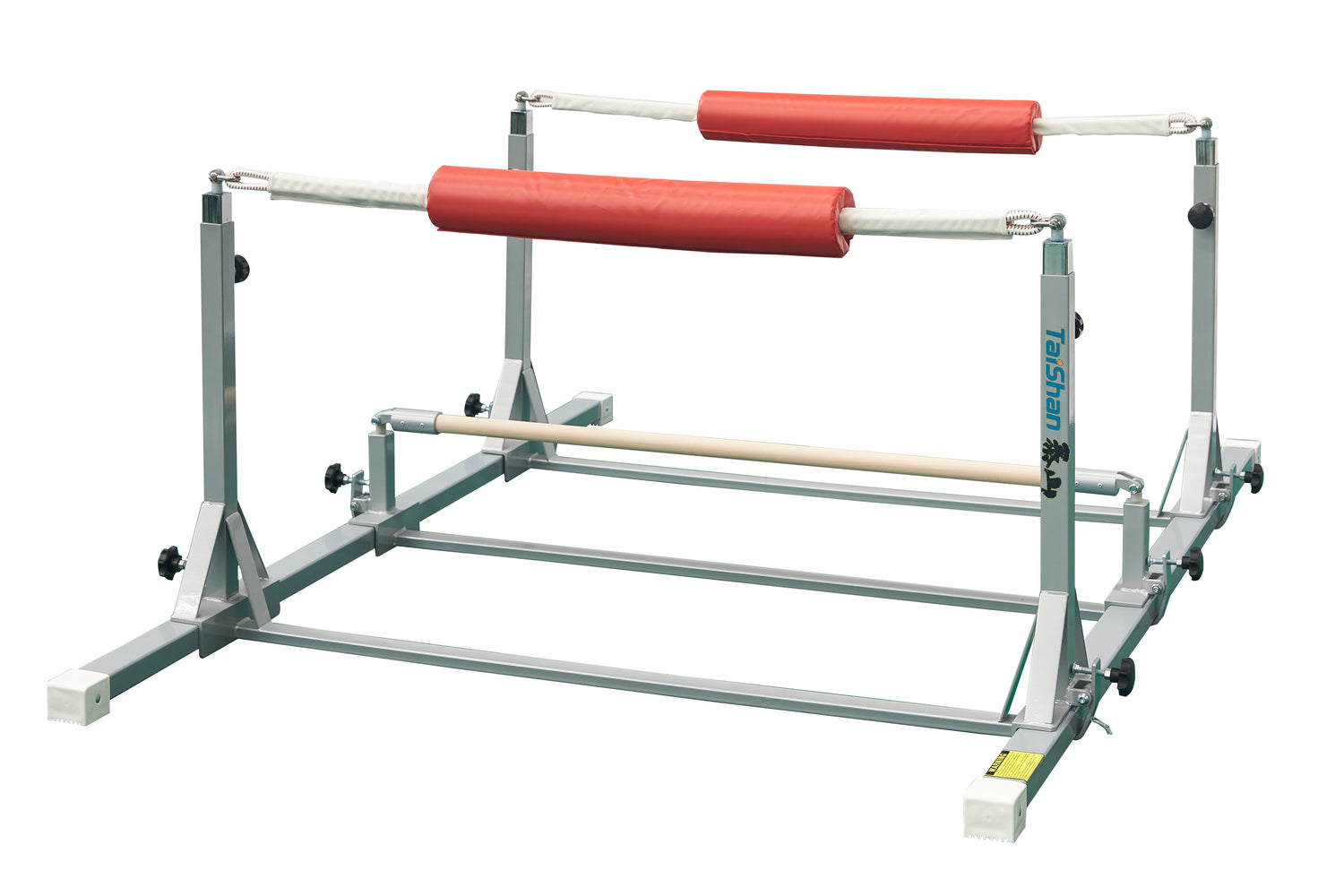 De 2 høje barre med elastikker kan reguleres fra 95-135 cm. På elastikkerne er der en skumkerne med XPE skum beklædt med PVC.