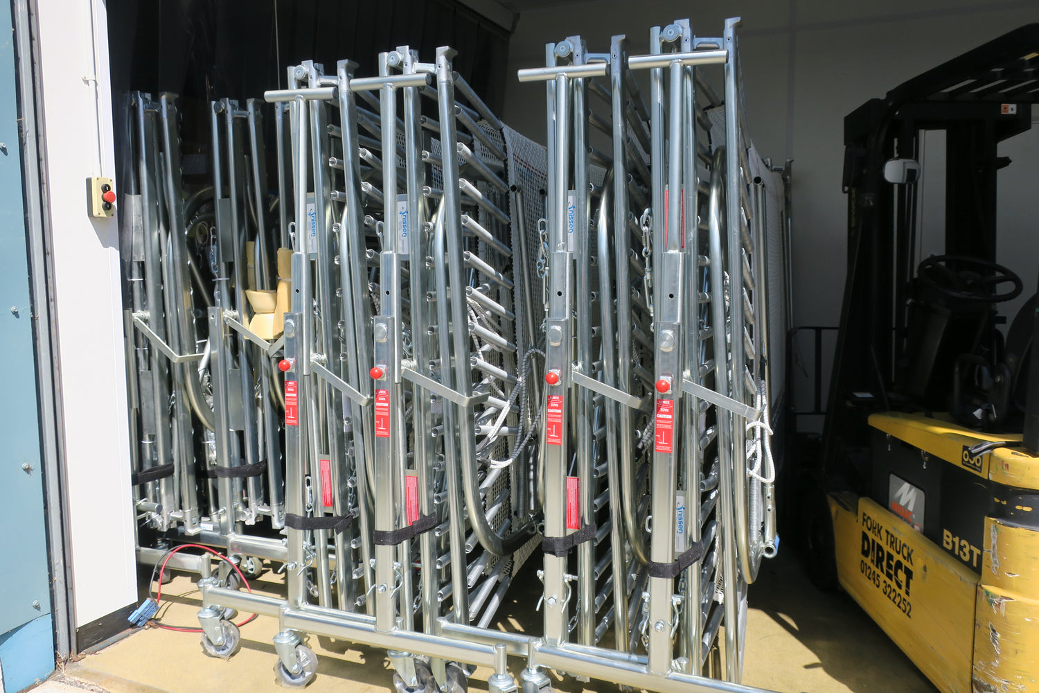 Hjulophæng til stortrampolin med hævesænke funktion.