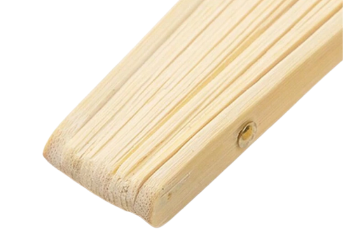 Viftevimplen er fremstillet af 170 x 80 cm let og smidigt silkestof, monteret på en 55 cm bred vifte lavet af bambustræ.