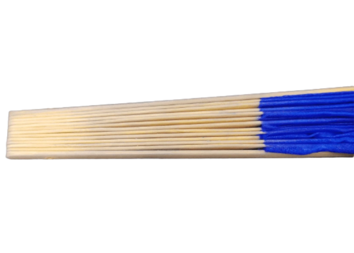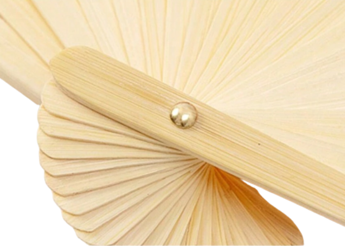 Viftevimplen er fremstillet af 170 x 80 cm let og smidigt silkestof, monteret på en 55 cm bred vifte lavet af bambustræ.