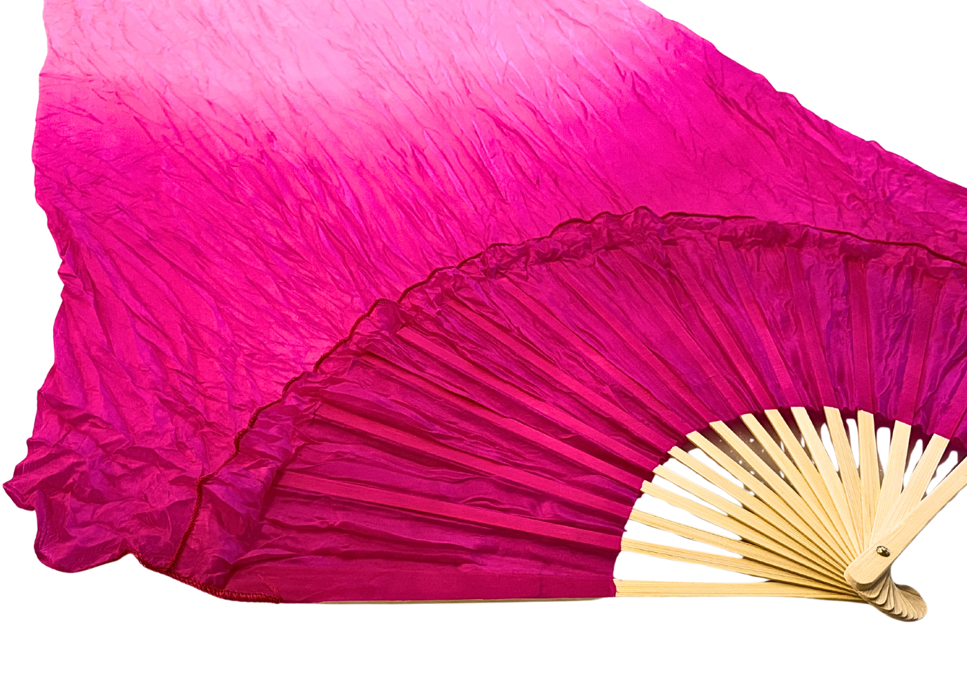 Viftevimplen er fremstillet af 170 x 80 cm let og smidigt silkestof, monteret på en 55 cm bred vifte lavet af bambustræ.