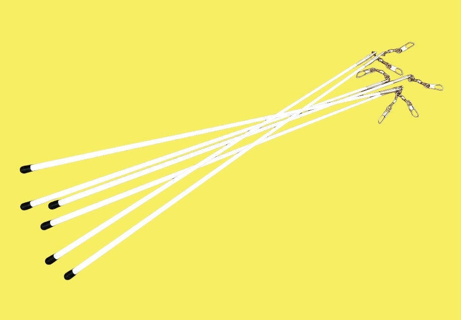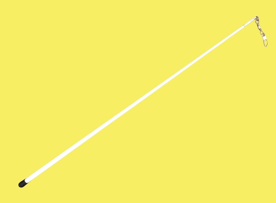 Klassisk hvid vimpelstang i glasfiber, med endeprop i gummi, samt øje og svirvel til vimpelmontering.