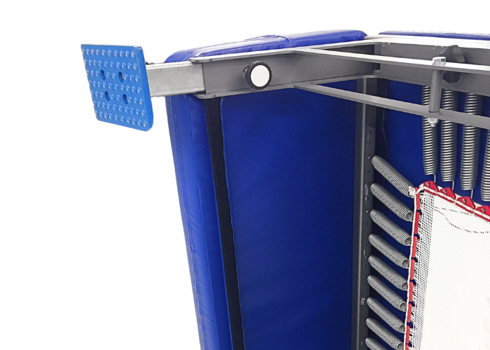 Regulerbar indspringshøjde: Forskydelig topramme, som giver mulighed for at indspringshøjden kan reguleres. Særligt velegnet til de yngre og lettere gymnaster, så de ikke skal bruge alt deres energi i tilløb og indspringet, men i stedet kan overføre energien til selve springet.