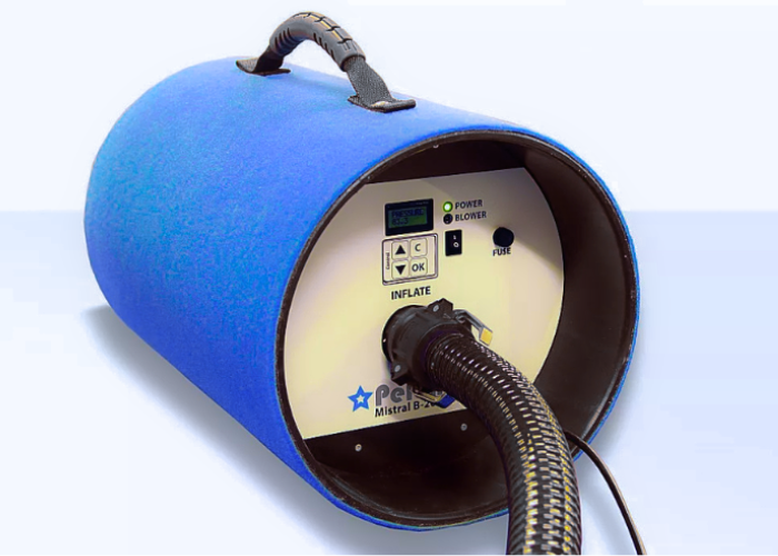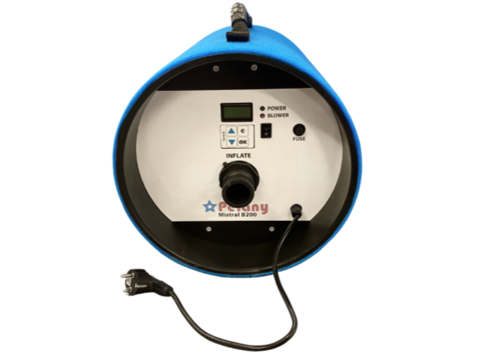 Blæseren kan fylde, trykregulere og tømme et airtrack.