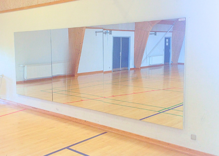 Foto: Pelany plademonteret spejlvæg monteret på Hals Skole.