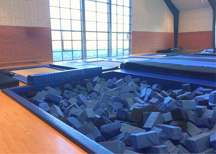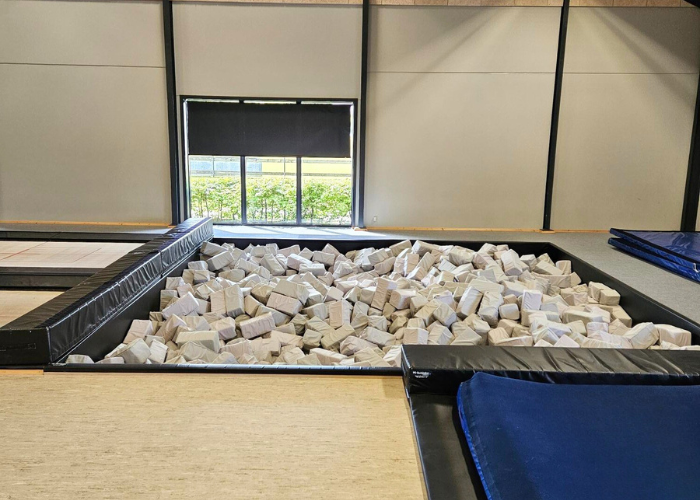 Blå skumklodser leveret fra Gymnashop.dk til Vejstrup Gymnastikefterskole.
