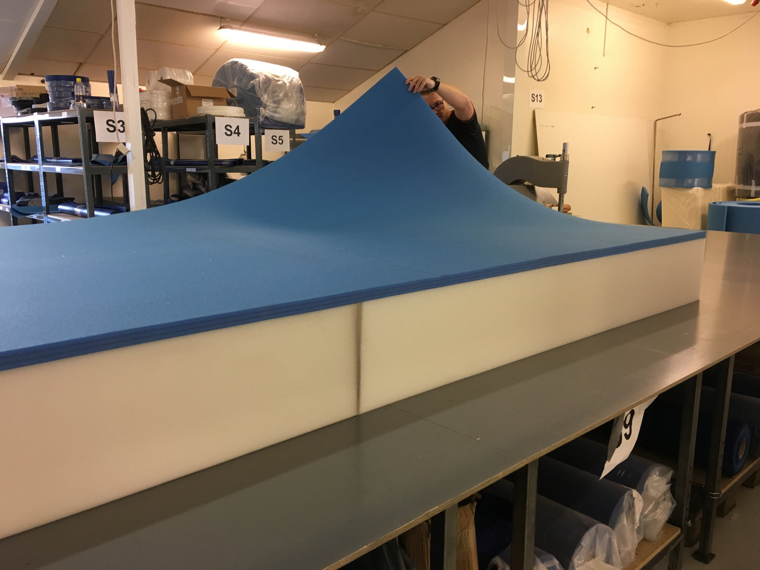 Ingen limninger - hele pladen er et stykke, så hvis I køber en nedspringsmåtte med støddæmperplade hos Gymnashop vil I ikke opleve, at støddæmperpladen går fra hinanden i limingerne.